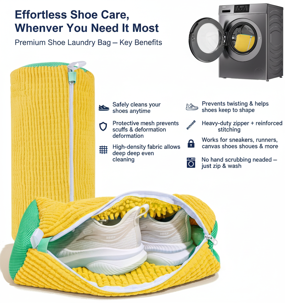 Its high-density mesh allows water and detergent to circulate freely for a deep, thorough clean, while the reinforced structure shields your shoes from harsh impacts inside the machine.